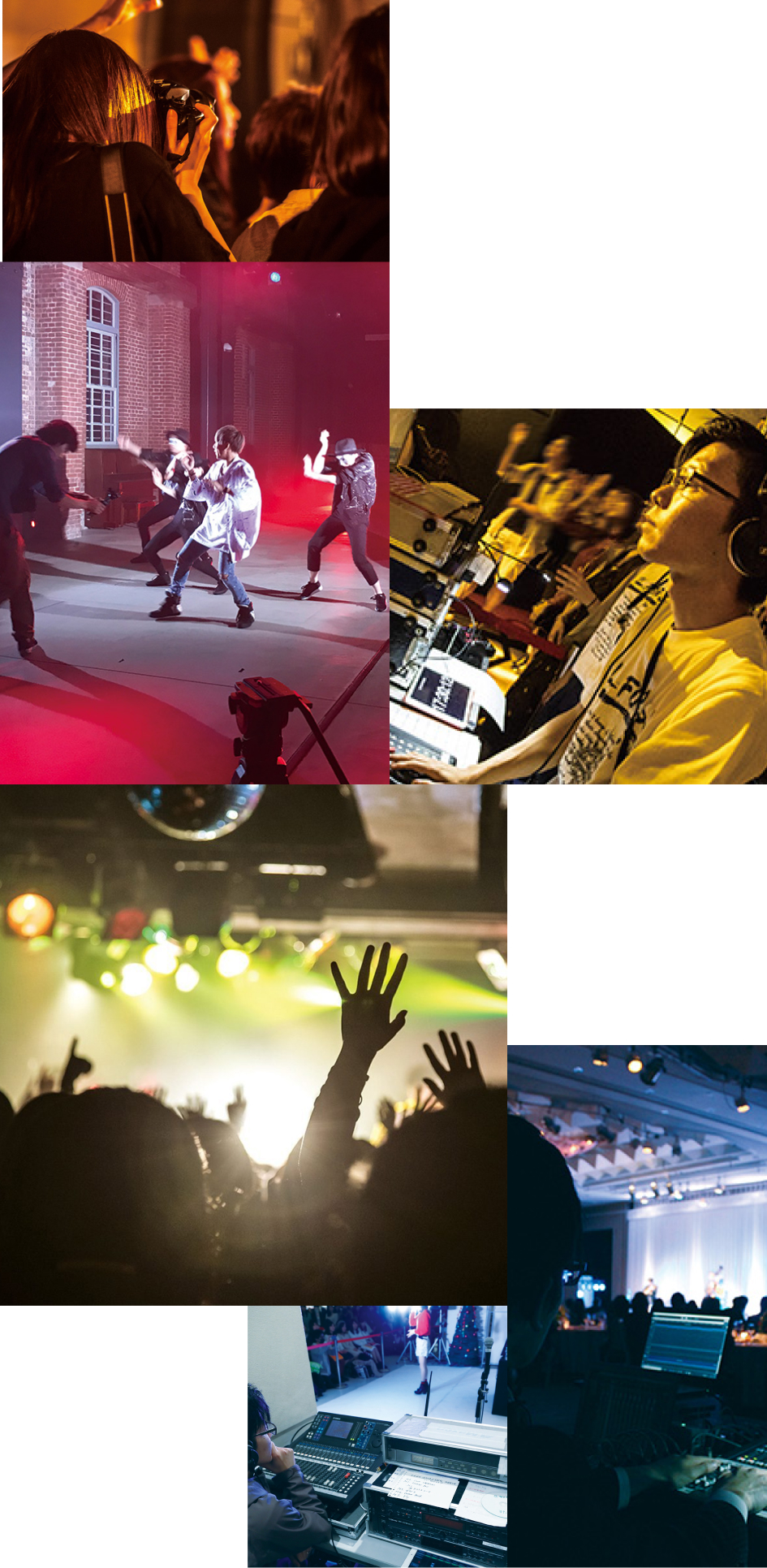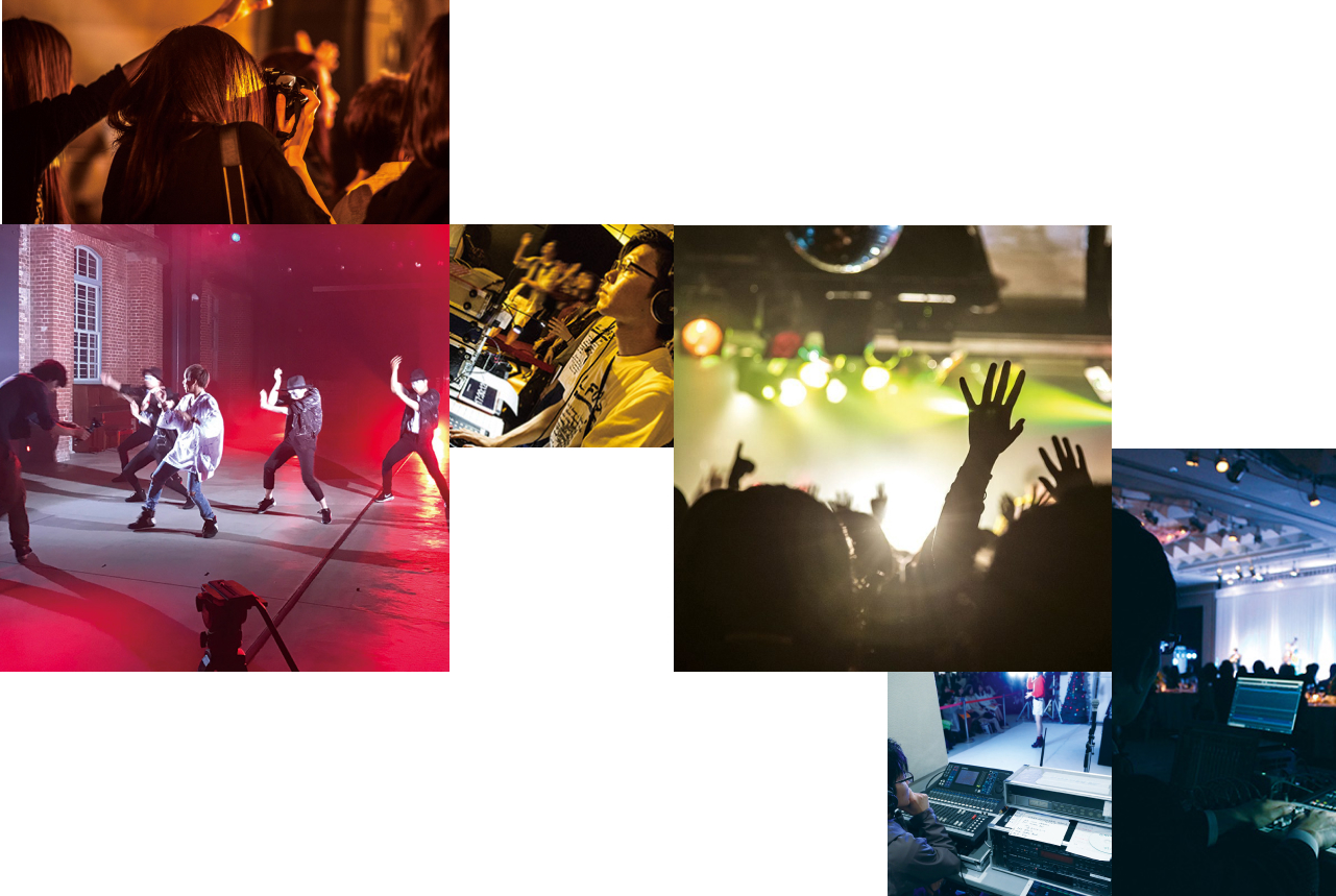 - ホテル ・ ホール ・イベント会場などでの⾳響・ 照明・映像オペレーション、 撮影(写真、動画)・映像制作など